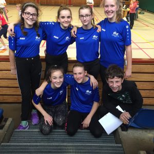 In Kategorie 15 ( Mädchen 3. und 4. Jahr)gingen zwei Mannschaften unserer Schule an den Start. In der Vorrunde gewannen und verloren beide Teams jeweils ein Spiel. Die Konkurrenz war sehr stark. Dann kam es zu einer Begegnung, wo beide unserer Mannschaften gegeneinander spielen mussten. Die Mädchen des 4. Jahres gewannen dieses Spiel. Endstand dieser Kategorie: einen sehr guten 4. Platz für die Mädchen des 4. Jahres ( Marie H, Lea M., Hannah, Kerstin, Eva, Eva-Maria, Julia und Sydney) und einen 5. Platz für die Mädchen des 3. Jahres (Marie S, Virginie, Katharina, Vita, Maggie, Djamila und Valerie)