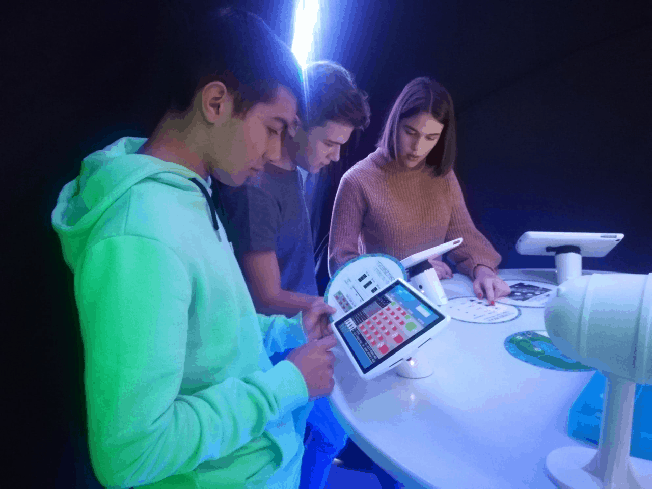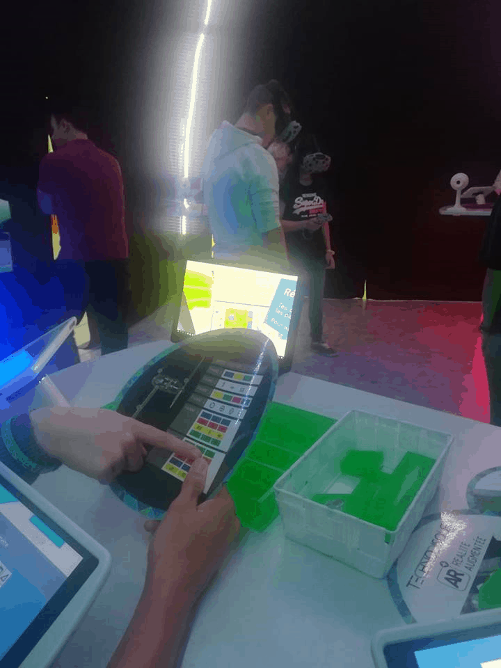 Die Animation findet in einer Art Kuppel statt und wenn die Türen sich hinter den Schülern schließen, befinden sie sich in einer futuristischen Welt. Sie werden in Dreierteams aufgeteilt und schon beginnt die Reise in dem interaktiven Videospiel. Sie tauchen in die virtuelle Realität ein und müssen zahlreiche Aktionen mit Hilfe von Brillen und Touchscreens meistern. In jeder Etappe des Spiels übernehmen die Schüler Aufgaben unterschiedlicher Berufskategorien: geologische Forschungen, Windmessung, Elektrotechnik, Montage, Wartung … So entdecken sie im Rahmen des Spiels alle Berufe, die beim Bau eines Windparks benötigt werden.