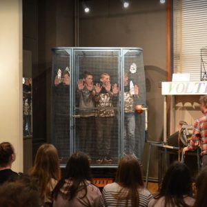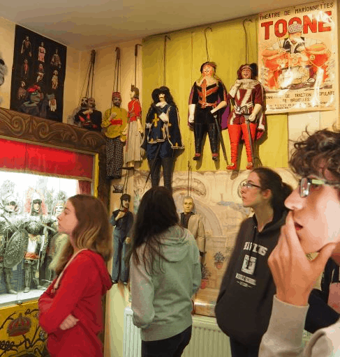 Den Schülern wurde ein Blick „hinter die Kulissen“ eines kleinen Theatersaals gewährt, in dem regelmäßig Theateraufführungen stattfinden. Im Mittelpunkt der Vorstellungen steht dabei die Figur des Tchantchès, des berühmten Lütticher Originals.