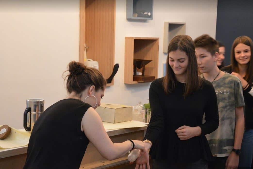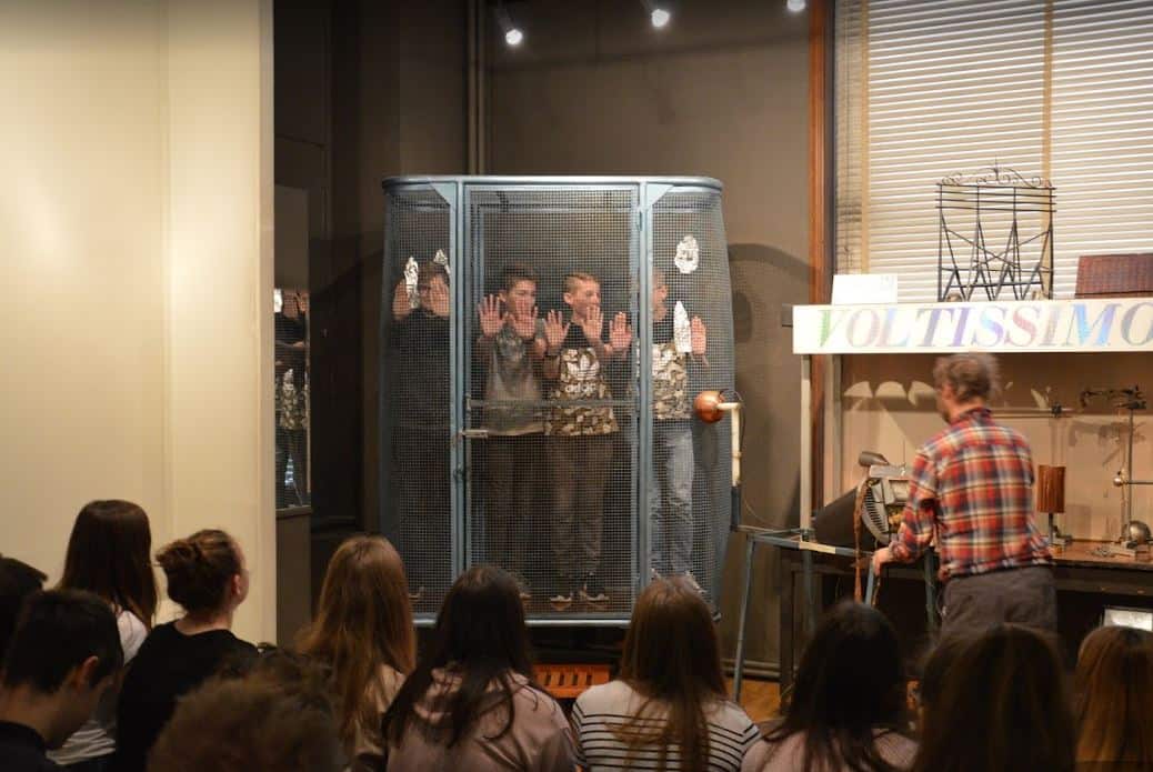 Zunächst besuchten alle Abteilungen zusammen das „Musée de la Science“. Anhand von Experimenten wurden dort die Eigenschaften von flüssigem Stickstoff und der Elektrostatik veranschaulicht.