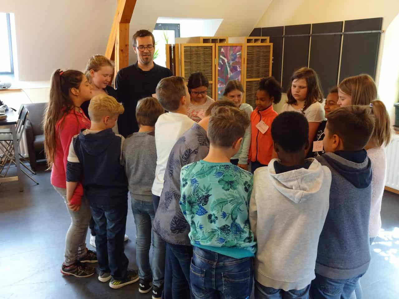 Ende des 4. Schuljahres genossen die Kinder eine tolle Übernachtung in der Schule mit dem Thema „Die Stadt St. Vith“. Tagsüber besuchten wir das Museum, bekamen einen historischen Rundgang und konnten sogar dem Bürgermeister Christian Krings einige Fragen stellen.