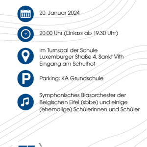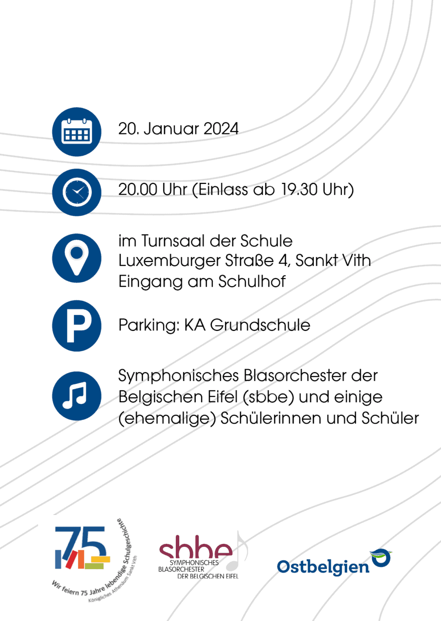 Im Rahmen des 75-jährigen Bestehens der Schule fand am Samstag, dem 20. Januar 2024 ein Konzert in unserer Schule statt. Das SBBE Orchester wurde dabei von einigen aktuellen und ehemaligen Schülerinnen und Schülern sowie ehemaligen Kolleginnen unterstützt. Auf dem Programm standen neben Musik auch Tanz und ein Gedicht Vortrag.